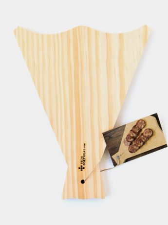 Esta é uma forma original de servir os seus queijos e enchidos. Feita em madeira natural de pinho e gravação a quente. Surpreenda os seus amigos quando forem a sua casa.