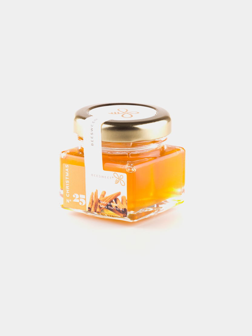 O Mel Nº 25 Christmas by Beesweet é o mais aromático de toda a gama de Méis Beesweet. É um Mel de floração de eucalipto, de tonalidade ouro, de sabor próximo da “canela”, que nos transporta para um ambiente natalício (Christmas in Portugal). Desperta emoções de nostalgia e recordações de outrora. Sendo um produto natural, poderá reagir às alterações climáticas e de flora. Assim, cada safra de Mel poderá acrescentar ligeiras alterações na sua especificação.