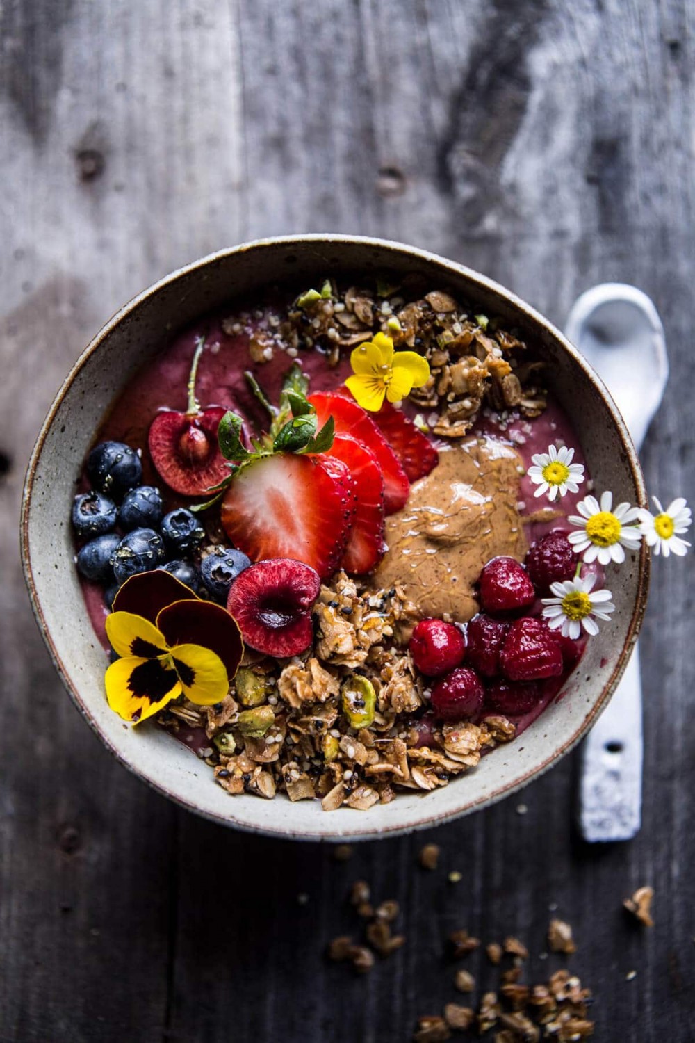 Combina deliciosos e nutritivos superalimentos (ex.. Chia, Cânhamo, Cacao), com alimentos ricos (ex.. amêndoas moídas, trigo sarraceno) e fruta em pó.