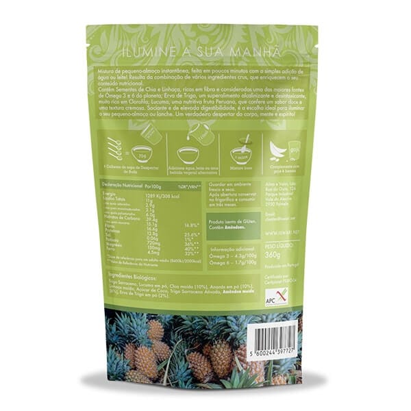A mistura instantânea para pequeno almoço Despertar de Buda Ananás & Erva de Trigo constitui uma excelente opção para iniciar o dia, uma vez que combina superalimentos de alta qualidade e elevado aporte nutricional e proteico.
