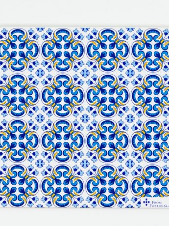 These table coasters are made of traditional Portuguese tiles and decorated with high temperature transfers. They are inspired by traditional portugues tiles. The coasters are dishwasher proof and have a cork base side to be used in tables.